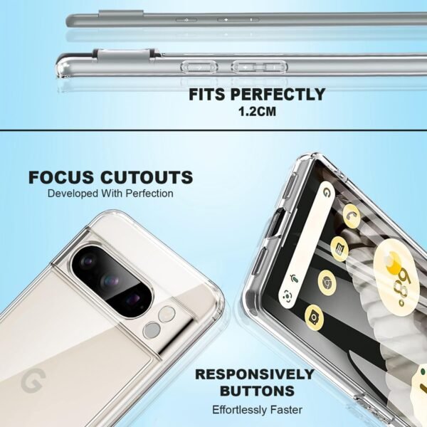 - 𝑪𝒓𝒚𝒔𝒕𝒂𝒍 𝑪𝒍𝒆𝒂𝒓 & 𝑻𝒓𝒂𝒏𝒔𝒑𝒂𝒓𝒆𝒏𝒕: Experience the epitome of clarity and transparency with our Ultra clear & transparent Case for Pixel 8 Pro. This sleek accessory provides ultimate protection while showcasing the elegant design of your Phone. Crafted with precision, it ensures a seamless transition between style and functionality, allowing you to flaunt your device’s original beauty. Embrace a case that not only safeguards but enhances the aesthetic appeal of your Phone.