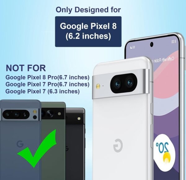 - 𝑺𝒄𝒓𝒆𝒆𝒏 & 𝑪𝒂𝒎𝒆𝒓𝒂 𝑮𝒖𝒂𝒓𝒅: Experience ultimate protection with our Google pixel 8 case featuring advanced design for both screen and camera. Safeguard your device from scratches, drops, and impacts, ensuring pristine display and crystal-clear photo capture. Elevate your Phone experience with style and security.